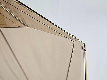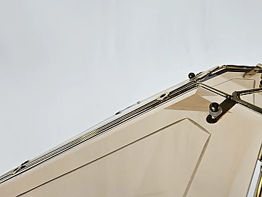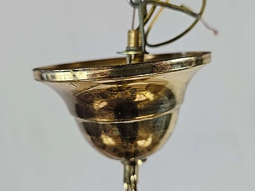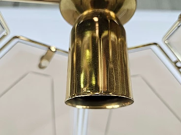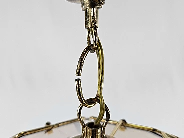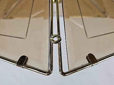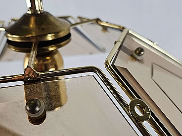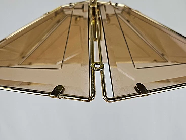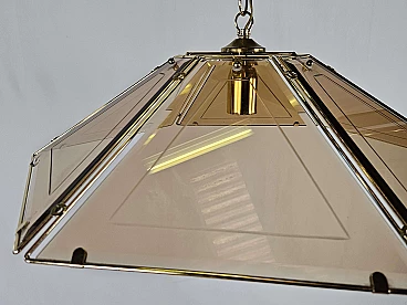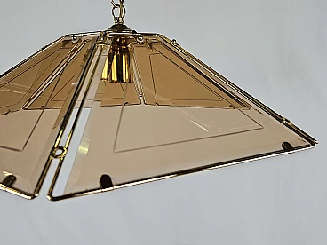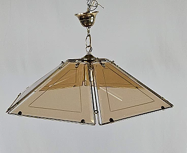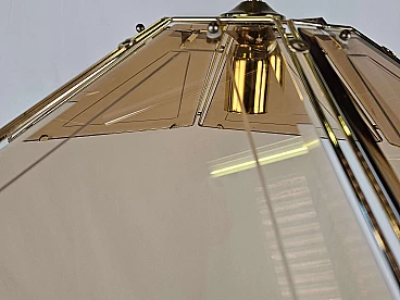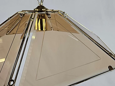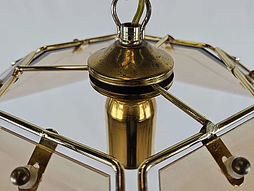Large and distinctive hexagonal brass and smoked glass chandelier, 1970s. Suitable for both modern and antique settings, it is suitable for a kitchen, living room, or hall at the entrance.