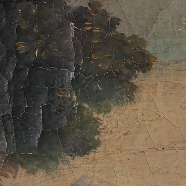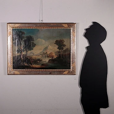 Northern Italy landscape with figures and architectures, oil painting on canvas, 18th century
