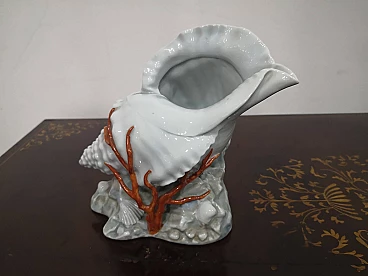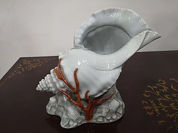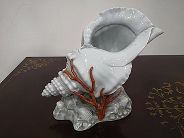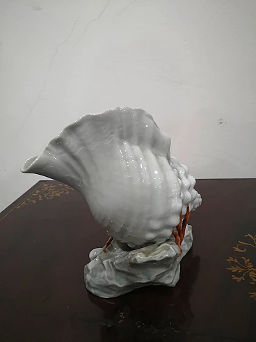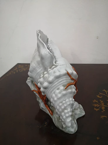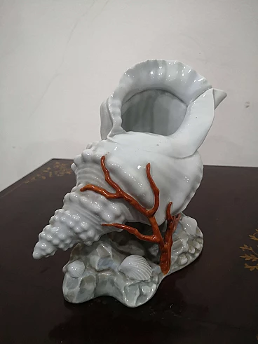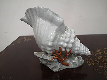 Capodimonte porcelain shell with hand-painted coral, 1960s