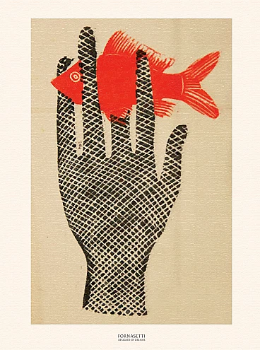Piero Fornasetti "Red Fish" print on 250g canvas paper stamped on the back but unsigned and unnumbered. Dimensions 60 x 45 cm. Printed by Grapheel San Marino. In very good condition. Beautiful poster on heavy ivory board according to the work of Piero Fornasetti.