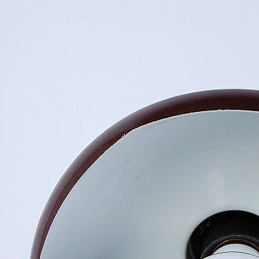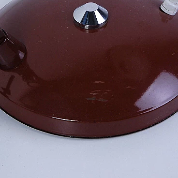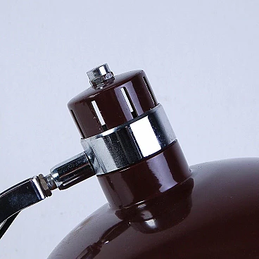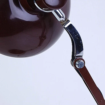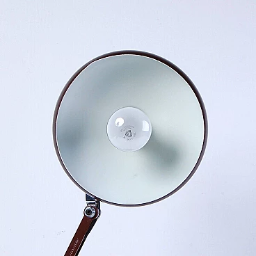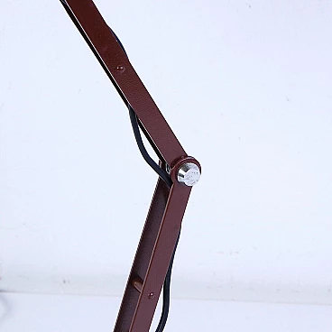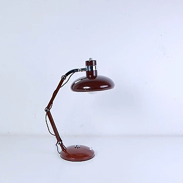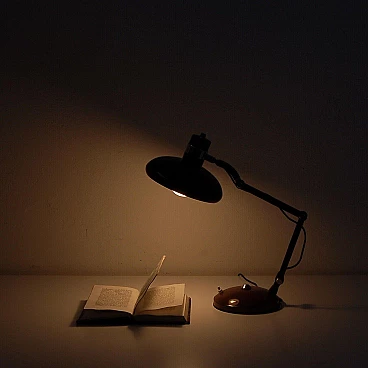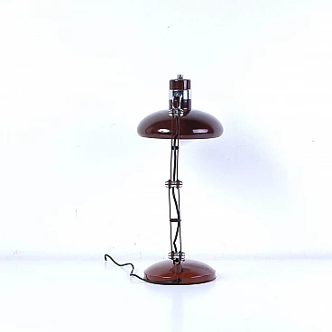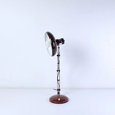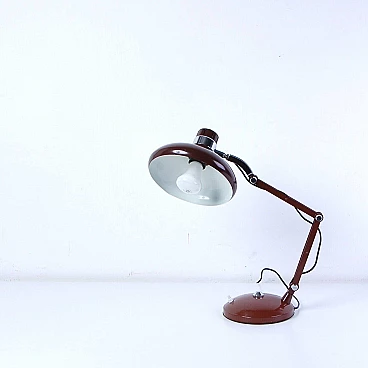 Table lamp from the original 1960s production. Industrial design and style, made of steel and brown enamelled metal. Very solid and heavy structure. Two tilting arms and adjustable shade.