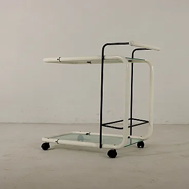 Bar cart with lacquered metal frame and double screened glass top, 1980s