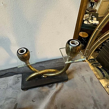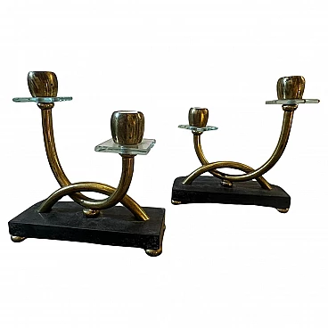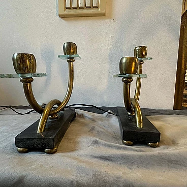 Pair of brass, marble and glass table lamps in the style of Gio Ponti, 1930s