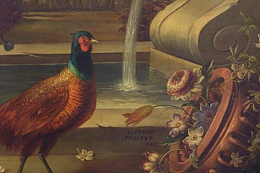 Alfredo Mahieux, Still life with pheasant, oil painting on canvas, 1960s