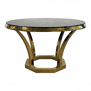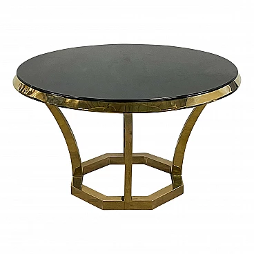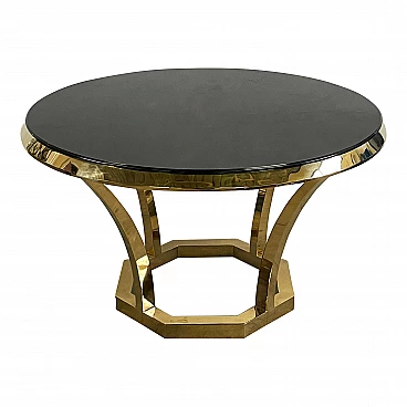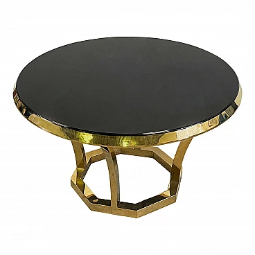 Circular table in gold chrome-plated steel with black glass top in Art Deco style, 1990s