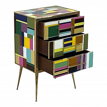 Three-drawer dresser covered in multicoloured Murano glass, 1990s