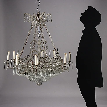Eight-light chandelier with metal frame covered in glass and crystal