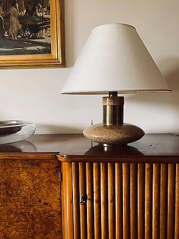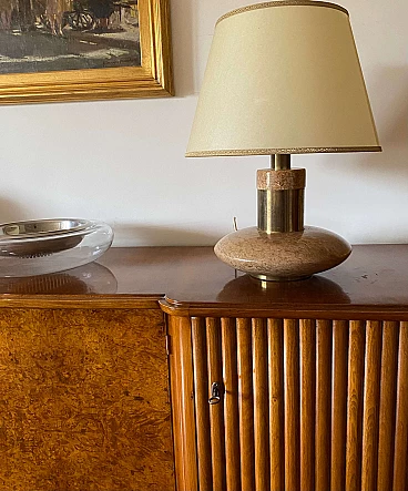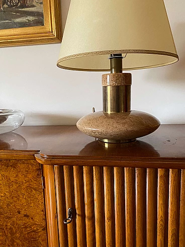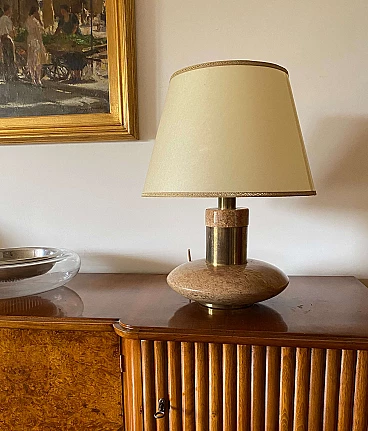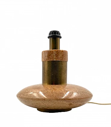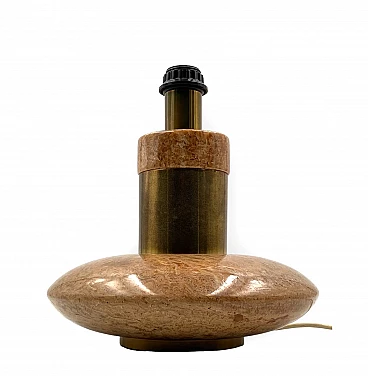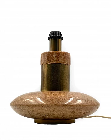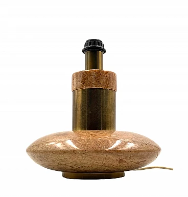 Hollywood Regency table lamp base in pink granite and brass, 1970s