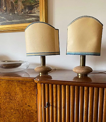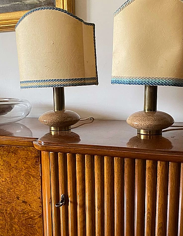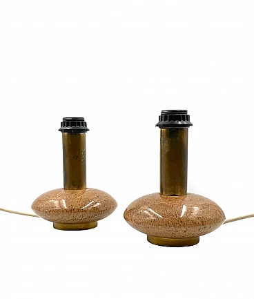 Pair of Hollywood Regency table lamps in pink granite and brass, 1970s