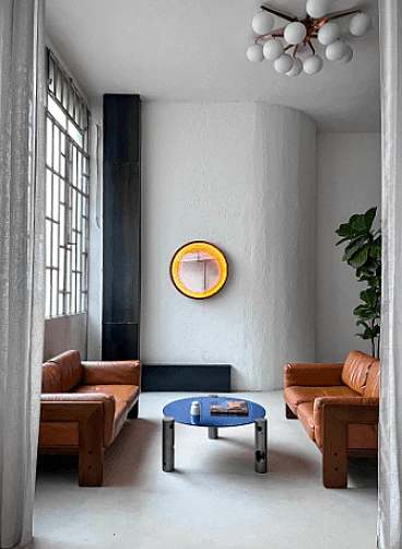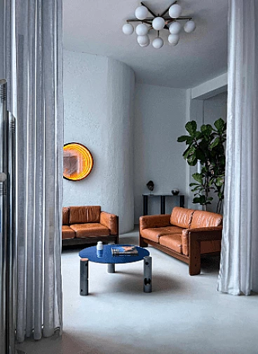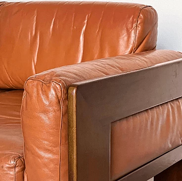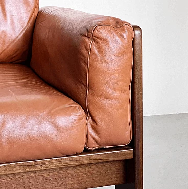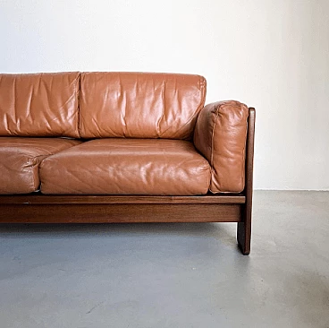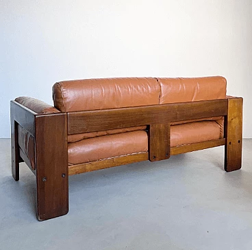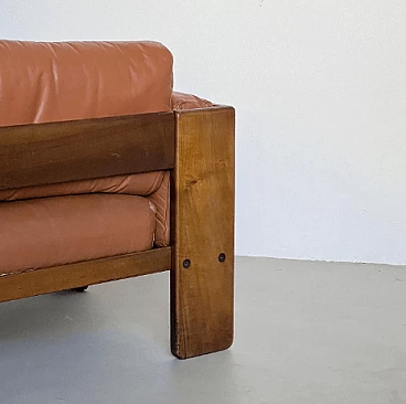 Bastiano sofa by Afra and Tobia Scarpa for Gavina, 1960s. Designed in 1962, Bastiano is a sculptural sofa that best expresses the couple's design philosophy. The elements that distinguish them - geometric wooden structure, soft leather, essential but timeless lines - are all present in the Bastiano, which represents a manifesto of their design. Conceptually similar to the Monk and Pigreco chairs, this sofa is a piece that will never go out of style: it is so beautiful and contemporary that it could have been designed today. The set illustrated in this ad demonstrates the ease with which it blends with contemporary collectibles to create a stunning living nook. The piece we offer is preserved in original condition and shows no signs of damage but only the predictable signs of six decades of life in a private home. Seat height: 40 cm.