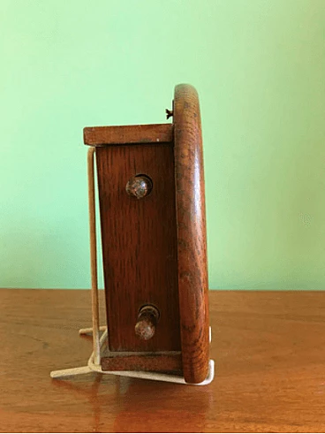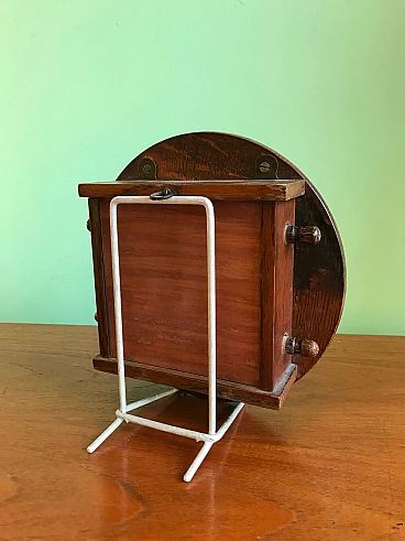 Raro calendario perpetuo di manifattura inglese entro cornice rotonda in rovere, dotato di tutti i giorni del mese montati su un piano in stoffa che ruota attraverso un sistema di rulli.
