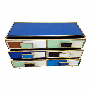 Multicolored Murano glass and brass dresser, 1980s