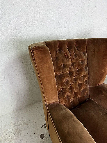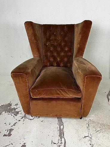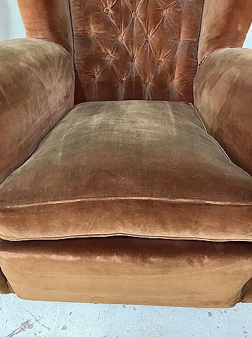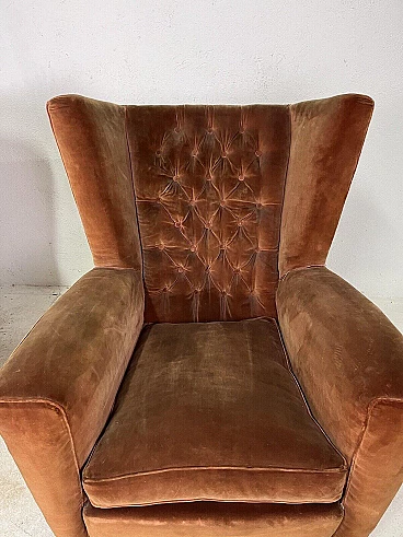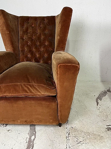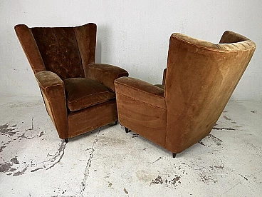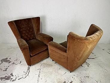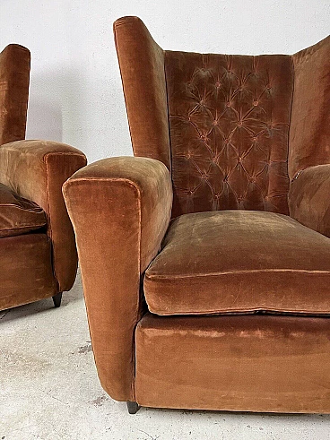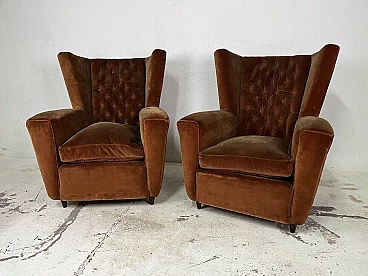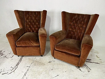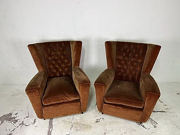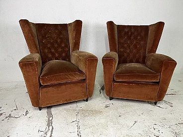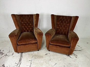 Pair of brown velvet armchairs attributed to Paolo Buffa, 1950s