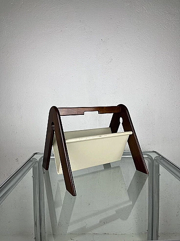 Natural and white varnished wood magazine rack in the style of Molteni, 1970s