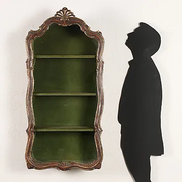 Rococo-style hanging display cabinet in wood and glass, early 20th century