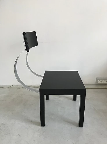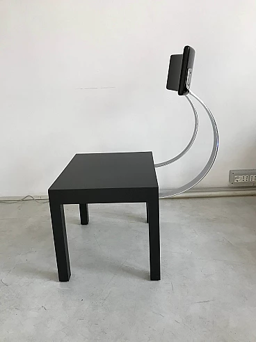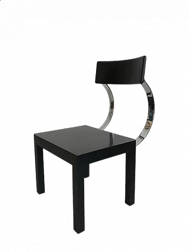 FOLLIA design Giuseppe Terragni, produced by Zanotta 1987. CHAIR with black seat and backrest. Backrest support springs in polished stainless steel. In excellent condition, never used before, collected for the love of beauty. Dimensions cm. 50 x 60 x H.80