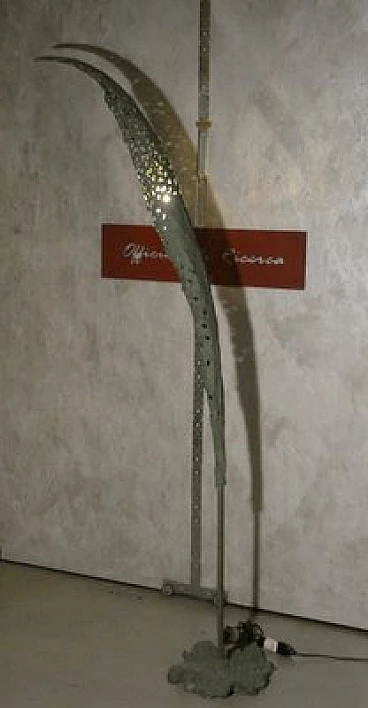 Horák's world is as if not of this world... his floor lamps turn into carnivorous plants, but despite all the fantasy and poetry, his creations are also endowed with functionality as well as atmosphere, fantasy and dreams. The 'Silueta' floor lamp features a patinated, sandblasted and perforated iron structure that produces fascinating light effects. Made entirely by hand, it is considered a true work of art. Horák is a master of metal; no one else can bend, assemble and weld iron and aluminium tubes and metal plates into new shapes the way he does... however, the delicate and creative violence he wields on the metal with increasing mastery is only one aspect of his art, because Horák is also a master of the surface.