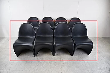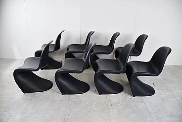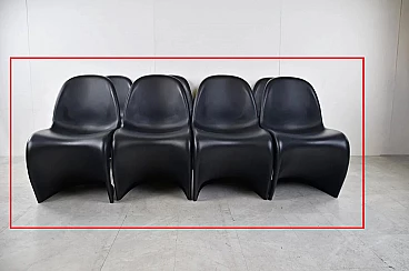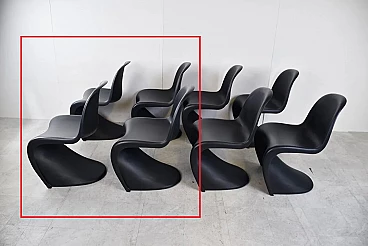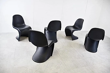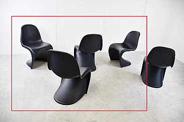 Produced by Vitra, this is an exclusive set of four iconic Panton Classic Chair S. In excellent condition. Minimal signs of use. Used in showroom as a Vitra display corner. Very slight surface marks here and there on the surface of the chairs very small. Otherwise OK. Model made entirely of polypropylene in matt black finish. Beautiful.