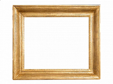 Neapolitan Empire gilt and carved wood frame, first decade of the 19th century. The four corners are enhanced by four large leaves denoting age and provenance. The whole structure is embellished with three orders of carving alternating palmettes and rhombuses, typical of the Empire period to which it belongs. The gilding is 24kt leaf gold on a layer of Armenian bolus. Inside measures: 65 x 78 cm. Complete with certificate of authenticity. We are at your disposal for further clarification or photographic details. Shipment throughout Italy, Europe and Rest of the World in maximum security and traceable. Shipping will be arranged privately.