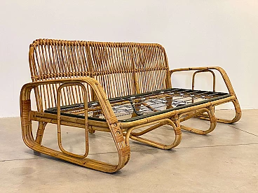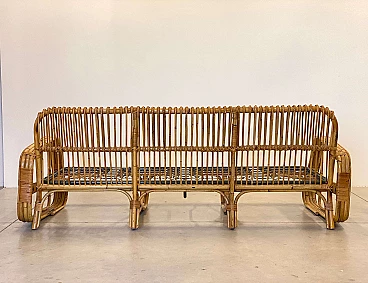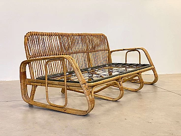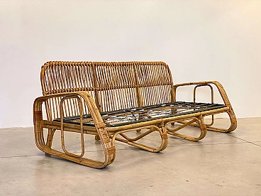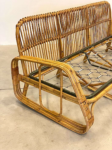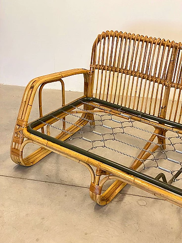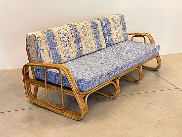 1970s bamboo sofa, very comfortable, can also become a bed, cushions with removable covers. The height at the seat is 43 cm.