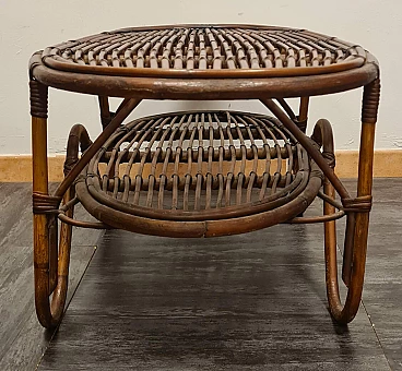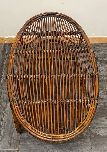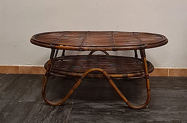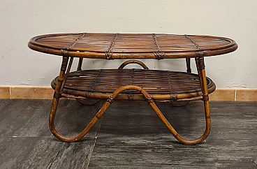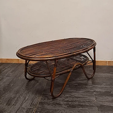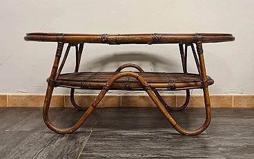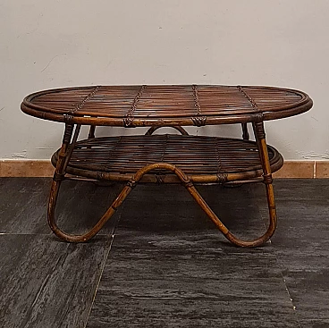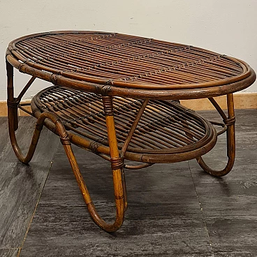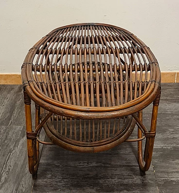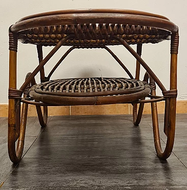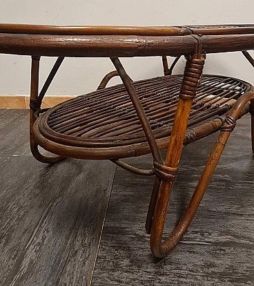 Bamboo and rattan coffee table designed by Tito Agnoli for Bonacina. At the beginning of the second half of the 20th century, Italian designers started the production of bamboo, wicker and rattan furnishings that have become icons of Italian design. Bonacina 1889 is an Italian designer furniture company founded in 1889 in Lurago d'Erba in the province of Como. The company specialises in working with reed and boasts collaborations with big names in design such as Giò Ponti, Franco Albini, Tito Agnoli and many others. The coffee table is ideal for both outdoor and indoor use and is in an excellent state of preservation. It has some slight defects and signs of time visible in the photos.