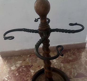 Wooden umbrella stand with tirebouchon pole, early 20th century