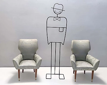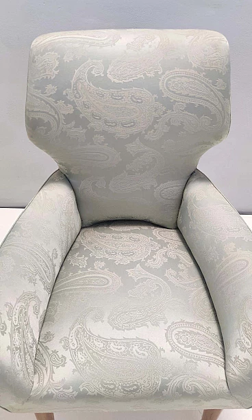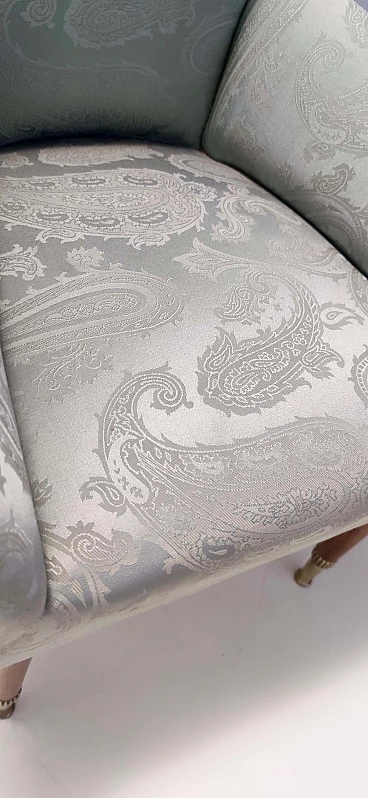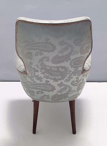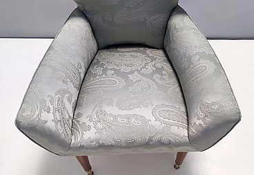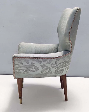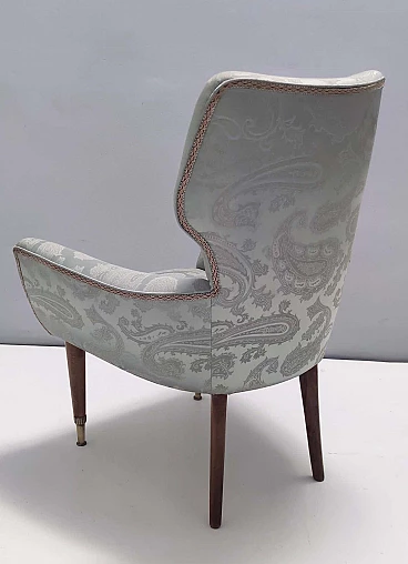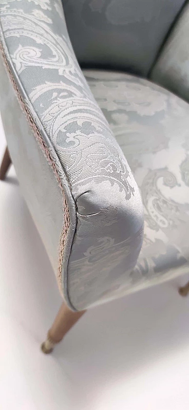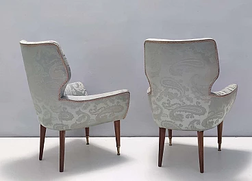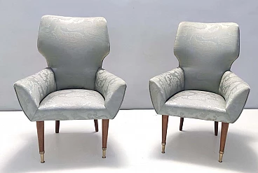 Pair of satin lounge chairs with walnut frame and brass feet, 1950s