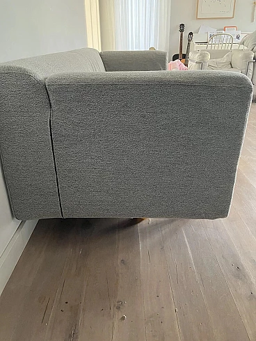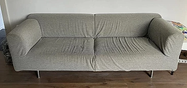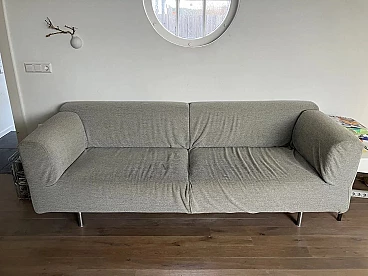 Met 250 sofa by Piero Lissoni for Cassina. 2.5-seat sofa. In very good overall condition with minimal signs of use. The upholstery needs to be replaced because it is stained, worn on the edge of the seat cushions and because the fabric has become loose. All inside padding is compact, in very good structural condition, as well as ergonomic reach; you can also try washing the fabric at a specialized center. In either case, an intervention is needed, but with a modest outlay you can have a sofa as good as new. The upholstery is a beautiful, soft and durable fabric, gray dotted wool (range of fabrics in top series Divina).