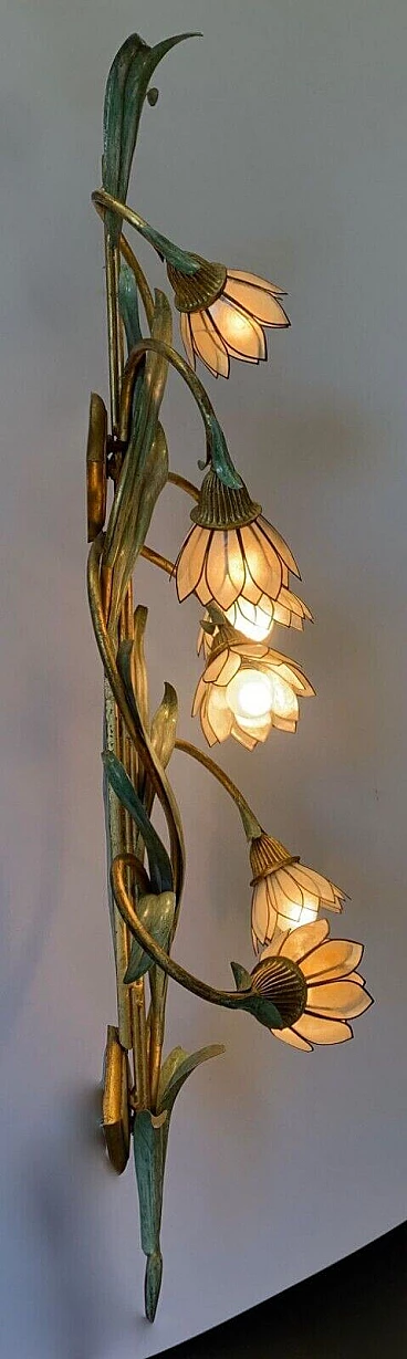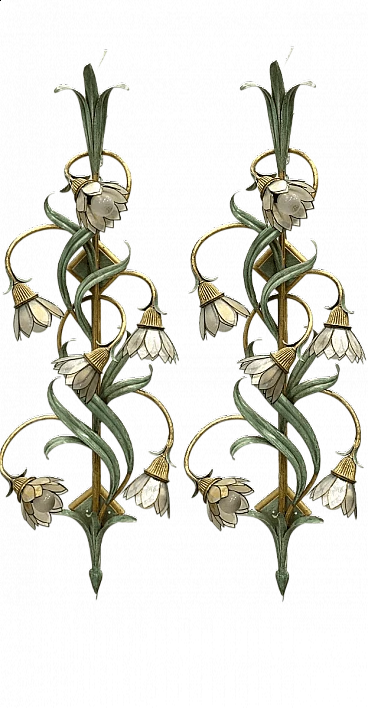 Pair of wall sconces by Banci Firenze with mother-of-pearl petals, 1980s