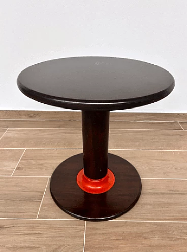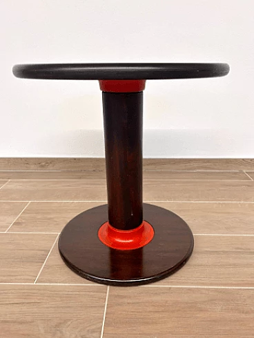Rocchetto coffee table by Ettore Sottsass for Poltronova, 1964. Round walnut coffee table with colored wood details. Bibliography: Domus 433, 12/1965, p. 42. F. Zanella, Ettore Sottsass: Catalogo ragionato dell'archivio 1922-1978, CSAC, Parma, 2017, p. 238.