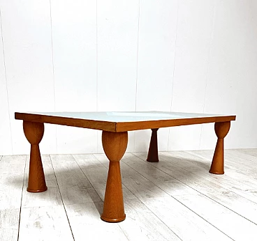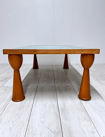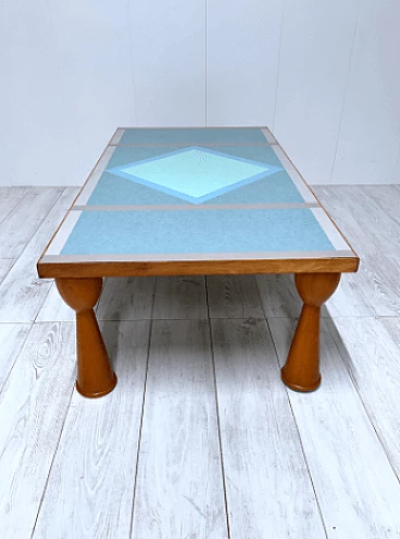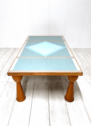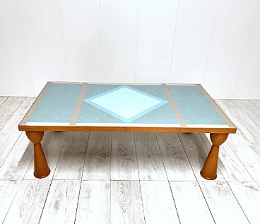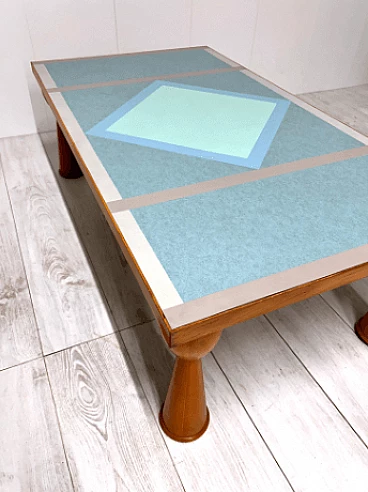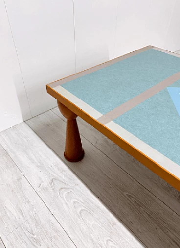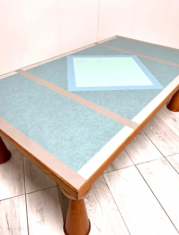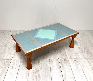 Alicudi coffee table by Ettore Sottsass for Zanotta, 1990s. Wooden structure and multicolor laminate top. Under the base there is the manufacturer's mark. Even in this coffee table, as in all of Sottsass's production, the constant interest in color and geometric shapes shines through.