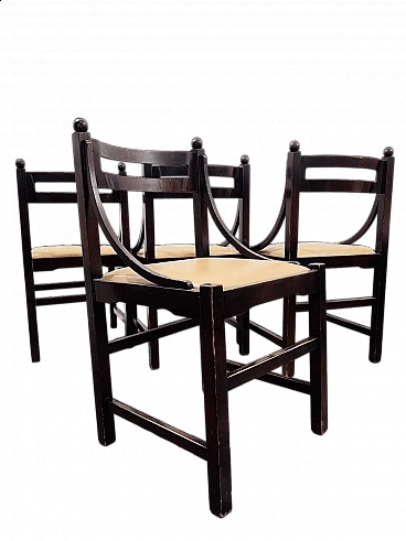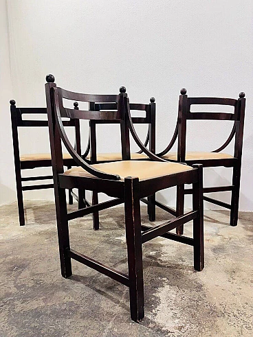 Set of four wooden chairs in the style of Ico Parisi for Cassina, 1960s. They are in good conservative condition, there are no aesthetic or structural defects to report, only slight and obvious signs of time due to use and age (see photos).