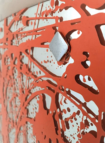 Plexiglass wall mirror with orange enamel details, 2012