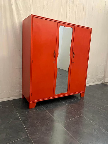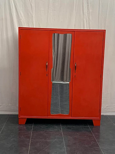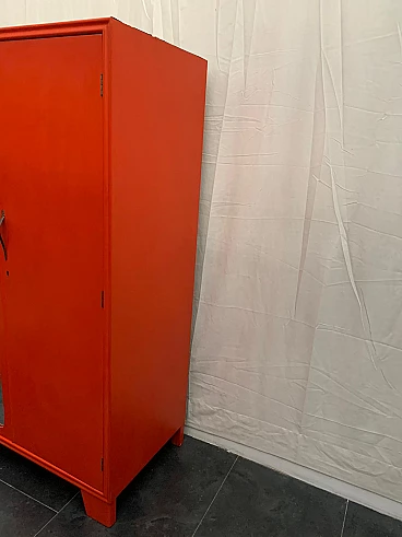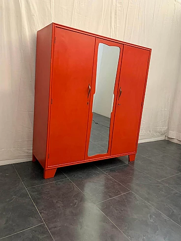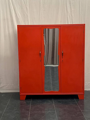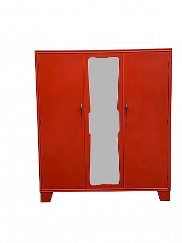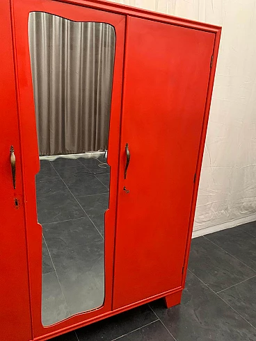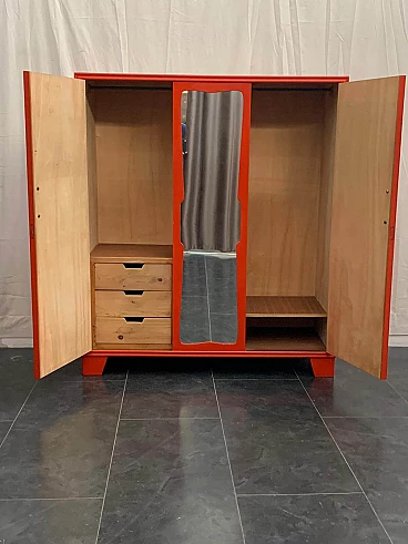 Art Deco wooden wardrobe in coral red, Italy, 30s
