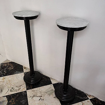 Pair of Art Deco ebonized wood and marble columns, 1930s