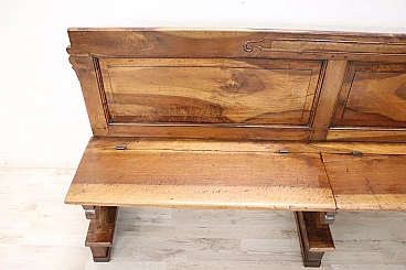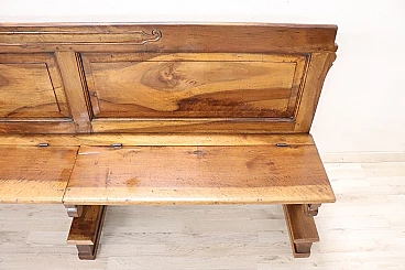 Antique bench Empire era early 19th century. The bench is made of solid walnut wood. Excellent wooden condition ready for placement in the home. Characterised by a seat with panels that flip up. Price negotiable Send us your purchase proposals and we will gladly evaluate them. We advise you to take a good look at all the attached photos in detail.