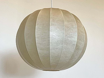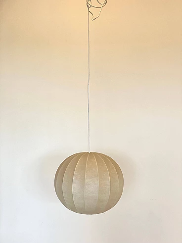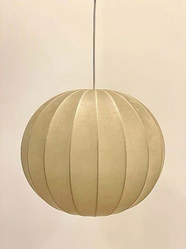 Cocoon hanging lamp, 1970s. Height of the lamp alone: 35 cm. It has a small restoration (see photo) and is missing the cover cup that goes to the ceiling.