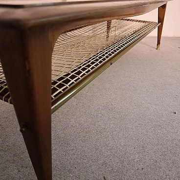 The lower brass edge rods not only add a decorative element, but also give the coffee table sturdy strength. The patina of time that envelops this piece adds a unique character, transforming it into a furnishing element that tells its story.