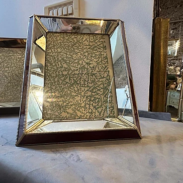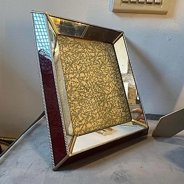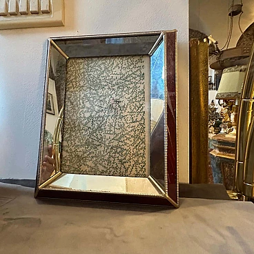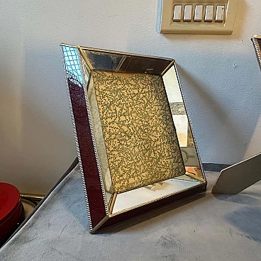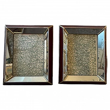 Pair of Art Deco frames in brass, burgundy and mirrored glass, 1930s