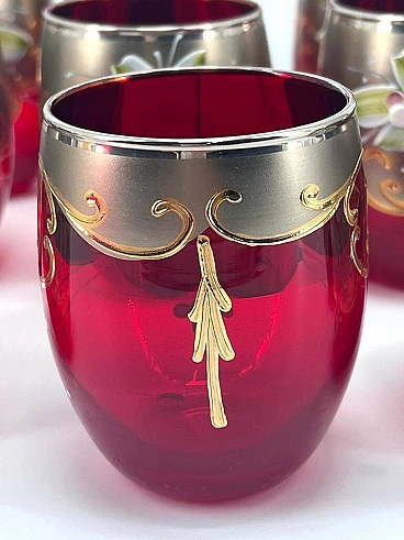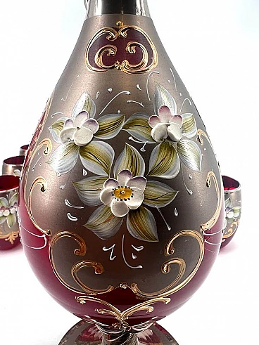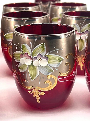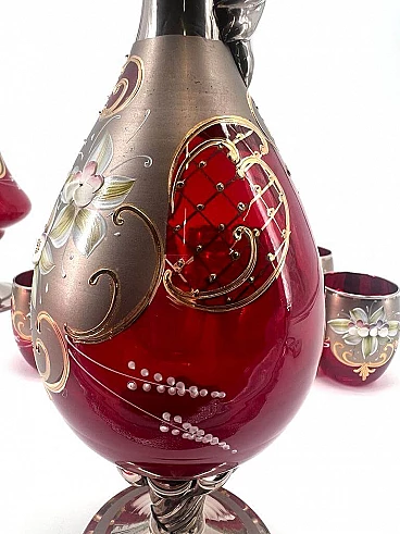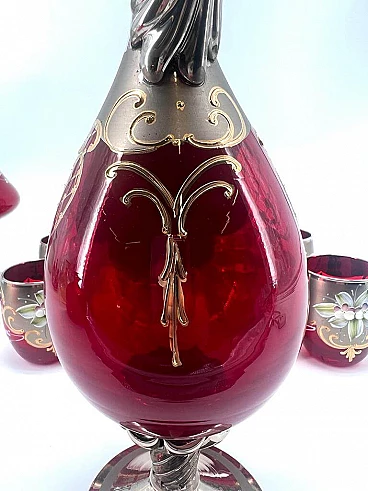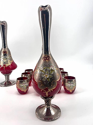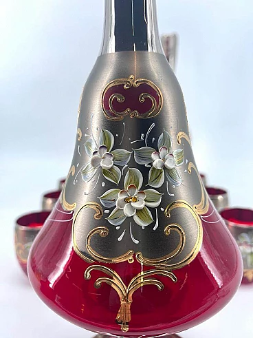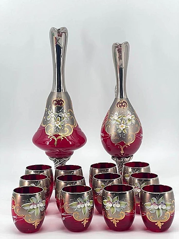 12 Tumblers and pair of decanters in Murano glass, 1950s