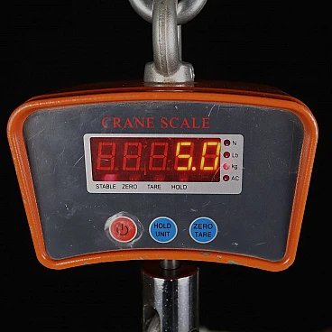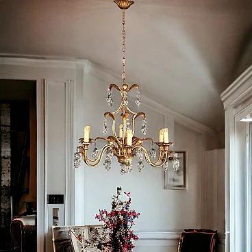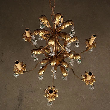 Six-light iron, gilded wood, sheet metal and crystal chandelier