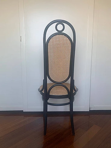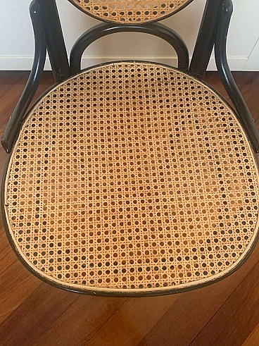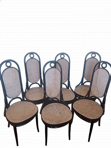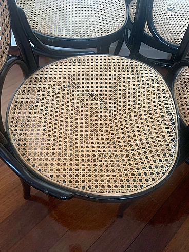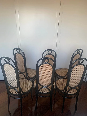 6 Chairs in black lacquered beech and Vienna straw by Thonet, 1980s
