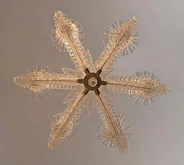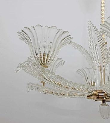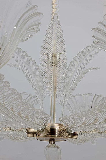 Art Deco Murano glass and brass chandelier by Ercole Barovier, 1930s 5