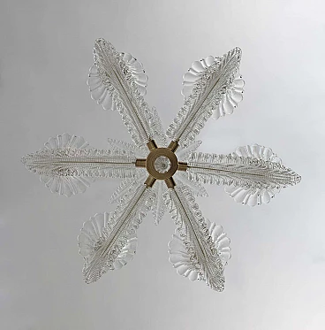 Art Deco Murano glass and brass chandelier by Ercole Barovier, 1930s 2