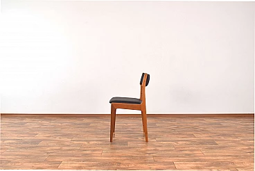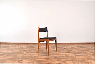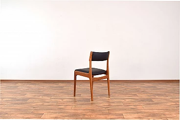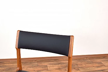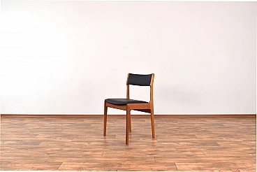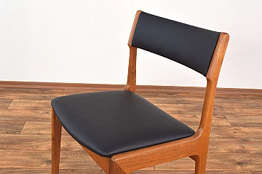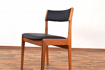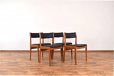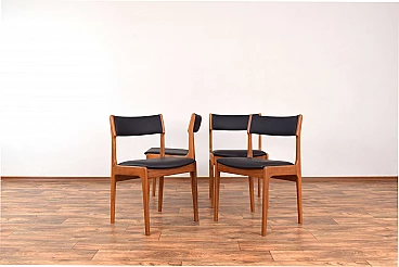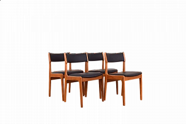 Set of four chairs by Korup Stolefabrik (KS) made in Denmark in the 1960s. The structure is made of solid teak and has been professionally and carefully restored by removing old layers and finishing it with varnish. The seat and back have been upholstered with black natural leather. The upholstery sponge has also been replaced.