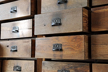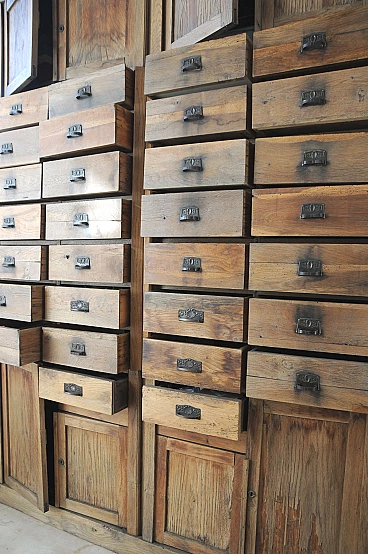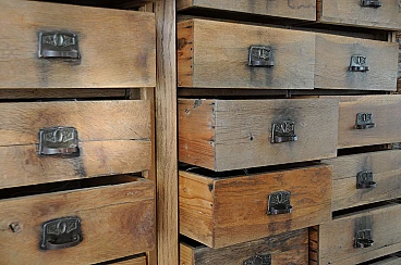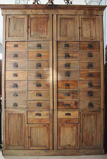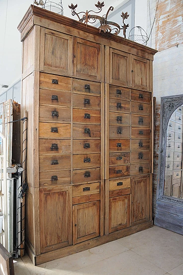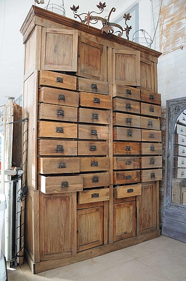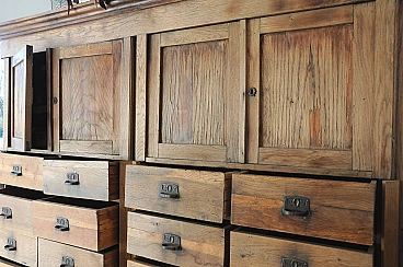 Dear users I propose this imposing chest of drawers belonged to my grandparents who in fact ran a prestigious emporium in the Italian Istria of the 30s. It consists of numerous lockable drawers with lock system and doors to contain the stocks of the goods on display. The structure is made of fir wood while all the exposed parts are in solid oak. The furniture has been recently consolidated in all its structural part and finished with wax. I recommend to anyone who loves to estimate an anti woodworm treatment. The furniture presents with pride the signs of time and it is also to these that owes its charm. As a possibility of use is indicated for various types of environments just let your imagination wander. For those interested I recommend the withdrawal by means of transport appropriate to example a platform at least 190 cm wide and at least 3 meters long so that it can be carried lying on the back.