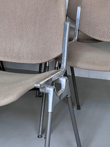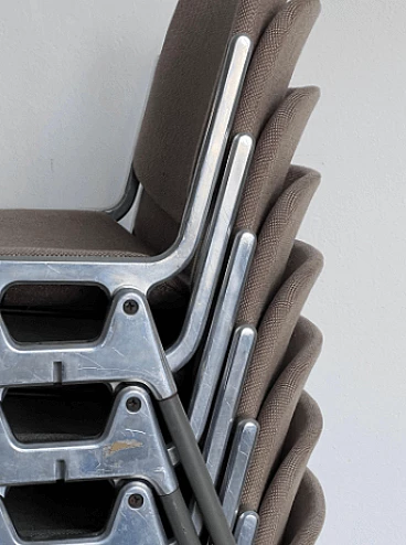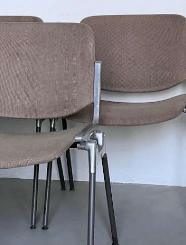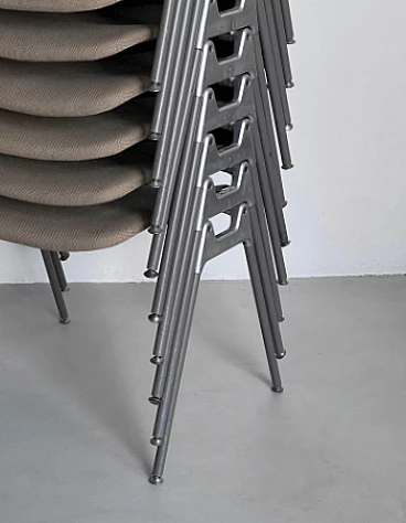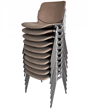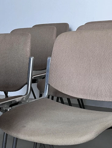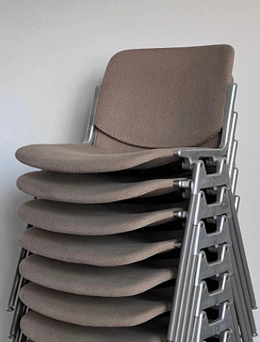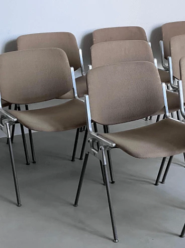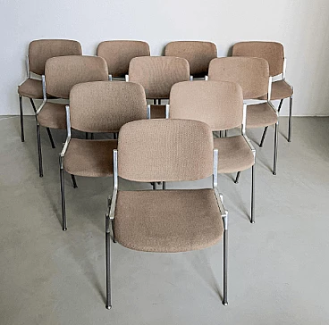 Set of ten DSC 106 chairs by Giancarlo Piretti for Anonima Castelli, 1980s. It is difficult to find such a large set, all with matching original coverings. These chairs are perfect for a large dining room, bar or office. Piretti's design is so timeless that the chairs are still in production today and obviously command a higher price than asked here. This set represents a great opportunity for both collectors/enthusiasts and professional decorators. All chairs are in original condition and show signs of age which may include minor stains and/or discoloration. There are no signs of holes, tears or major wear on the upholstery of any of the chairs. Seat height: 43 cm. Also available is a set of eight chairs with light blue upholstery (for further information contact the seller).