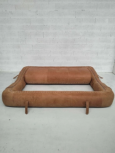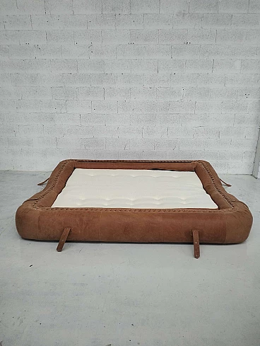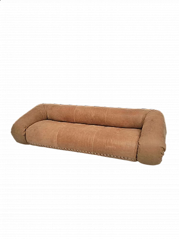 Anfibio sofa bed designed by Alessandro Becchi and produced by Giovannetti in the 1970s. Designed in 1970, the Anfibio sofa bed has been described by critics all over the world as a "work of art". This piece of furniture is characterized by its generous dimensions and soft and enveloping shapes that invite you to relax, comfort and sharing. The Anfibio is characterized by the fact that it can be converted into a bed. This model has been upholstered with an exceptional natural leather. The sofa consists of a non-deformable high density polyurethane padding, padded with heat-sealed acrylic fibers and protective fabric. All fabric parts are removable.