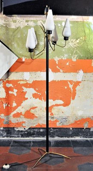 Iron and brass floor lamp, 1950s