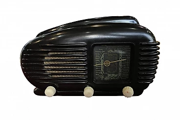 Radio Tesla model "308U" produced by the Czechoslovak house Talismann in Prague in the mid 50s, with shaped structure of modernist design in bakelite and three knobs.